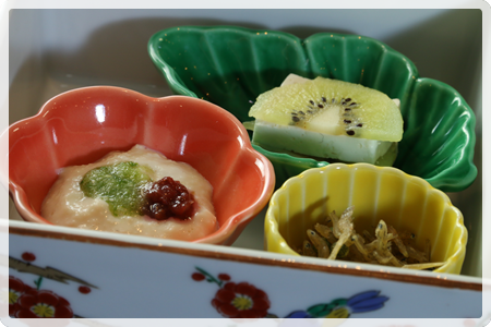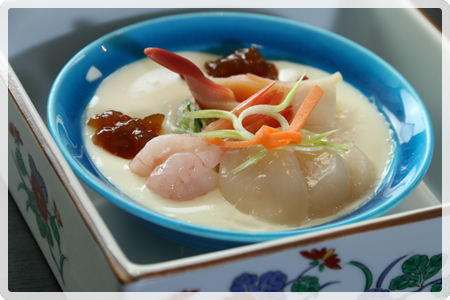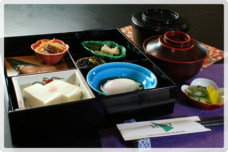 「畑の肉」とも言われる大豆にこだわった当館自家製の豆腐は、水に落とさずに作ったので極めて高い良質なたんぱく質等の栄養素がたっぷり詰まってます。 消化吸収が抜群で胃腸にやさしい健康食で美容食で長寿食です。 口の中でマッタリと広がる自然の甘味をお楽しみ下さい。
